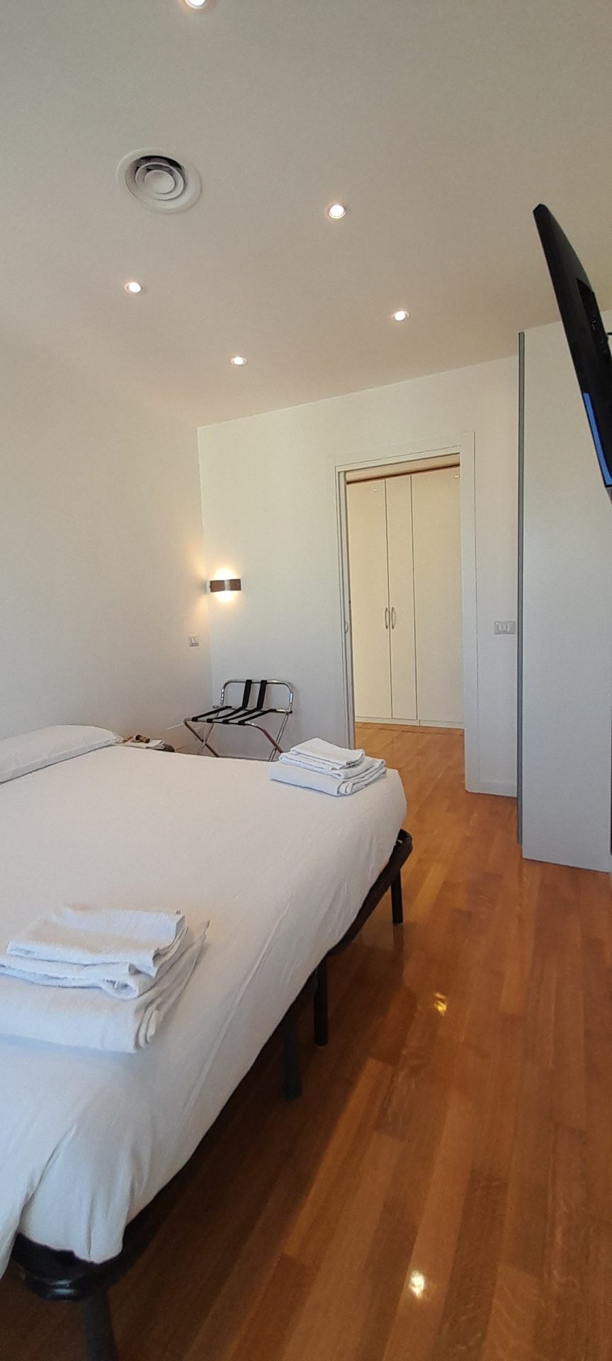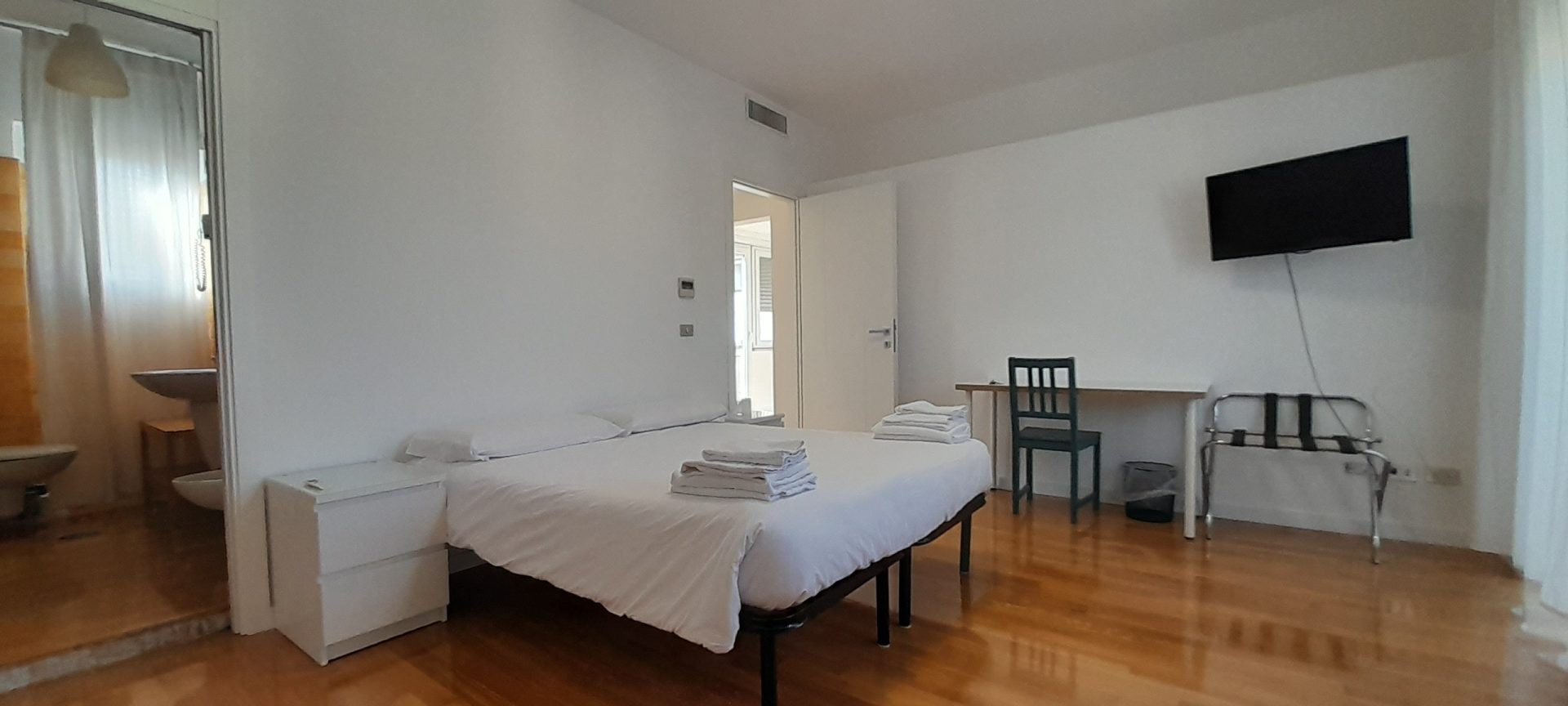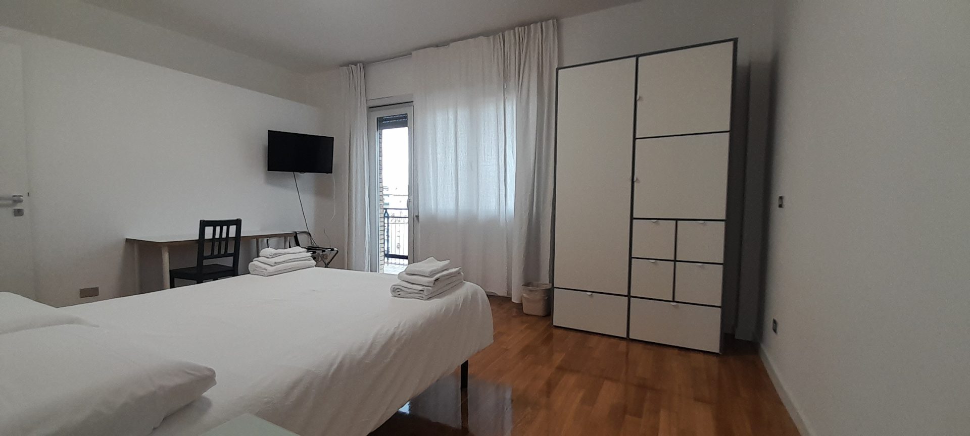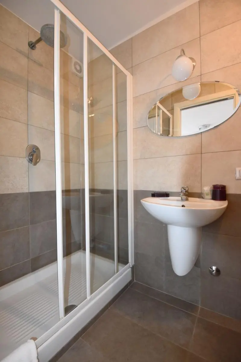 Double/twin room with air conditioning, wardrobe, balcony on the top floor and private bathroom with shower.