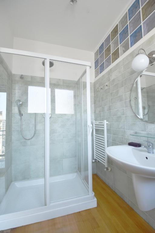 Camera matrimoniale/doppia con letti singoli dotata di aria condizionata, armadio, balcone al piano attico con vista città e bagno privato in camera con doccia.